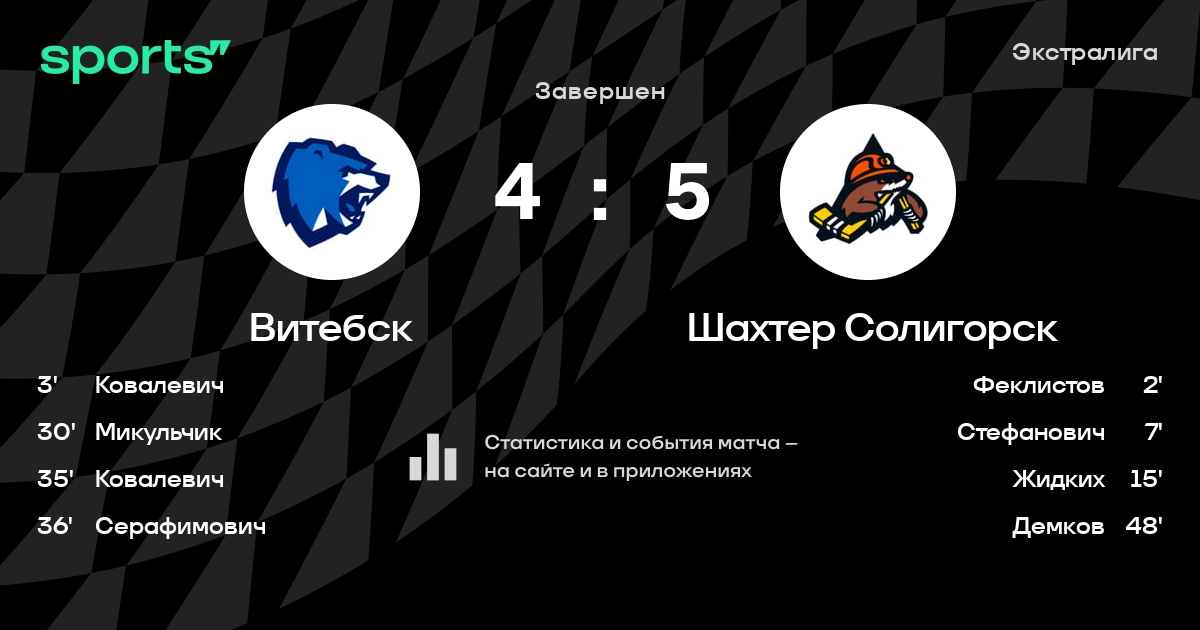 В прошедшем матче в рамках турнира Экстралига состоялась встреча команд Витебск - Шахтер Солигорск в городе Витебск (Беларусь) на стадионе Витебский дворец спорта (вместимость - 2000)