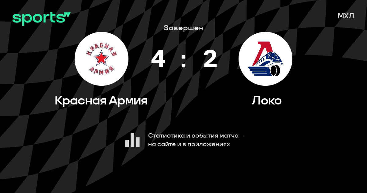 В прошедшем матче в рамках турнира МХЛ состоялась встреча команд Красная Армия - Локо в городе Москва (Россия) на стадионе ЦСКА-Арена