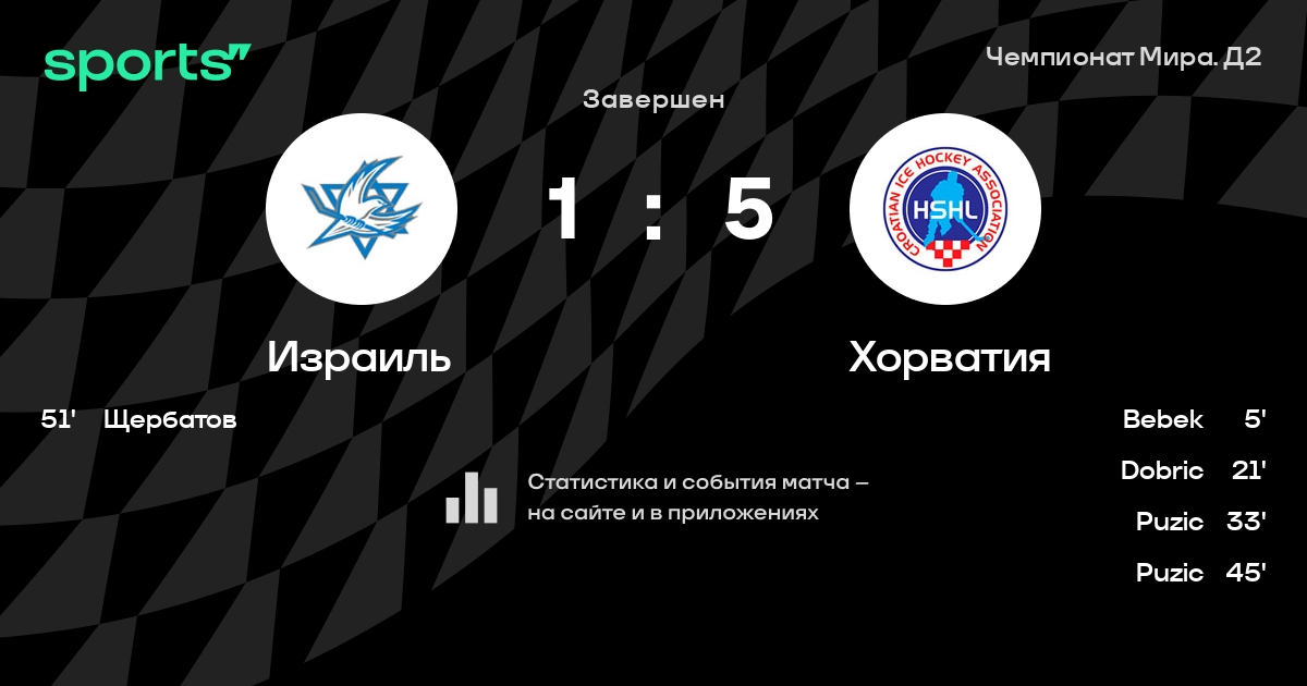 В прошедшем матче в рамках турнира Чемпионат Мира. Д2 состоялась встреча команд Израиль - Хорватия в городе на стадионе Klizalište Velesajam