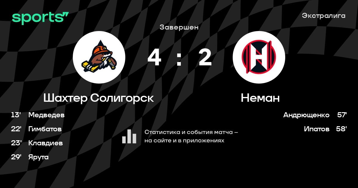 В прошедшем матче в рамках турнира Экстралига состоялась встреча команд Шахтер Солигорск - Неман в городе Солигорск (Беларусь) на стадионе Ледовый дворец спорта Солигорск (вместимость - 1800)