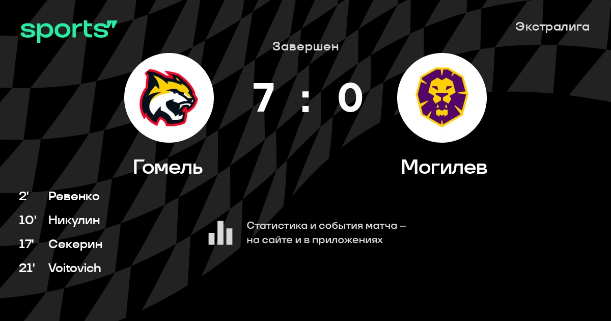 В прошедшем матче в рамках турнира Экстралига состоялась встреча команд Гомель - Могилев в городе Гомель (Беларусь) на стадионе Ледовый дворец Гомель (вместимость - 2700)