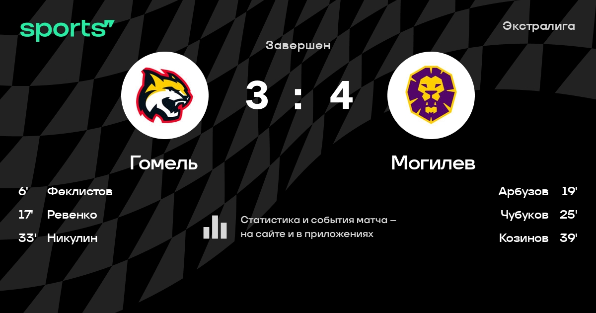 В прошедшем матче в рамках турнира Экстралига состоялась встреча команд Гомель - Могилев в городе Гомель (Беларусь) на стадионе Ледовый дворец Гомель (вместимость - 2700)