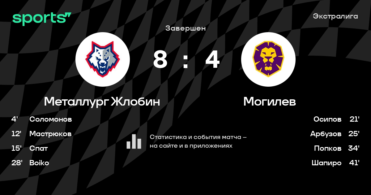 В прошедшем матче в рамках турнира Экстралига состоялась встреча команд Металлург Жлобин - Могилев в городе Жлобин (Беларусь) на стадионе Ледовый дворец Металлург (вместимость - 2018)