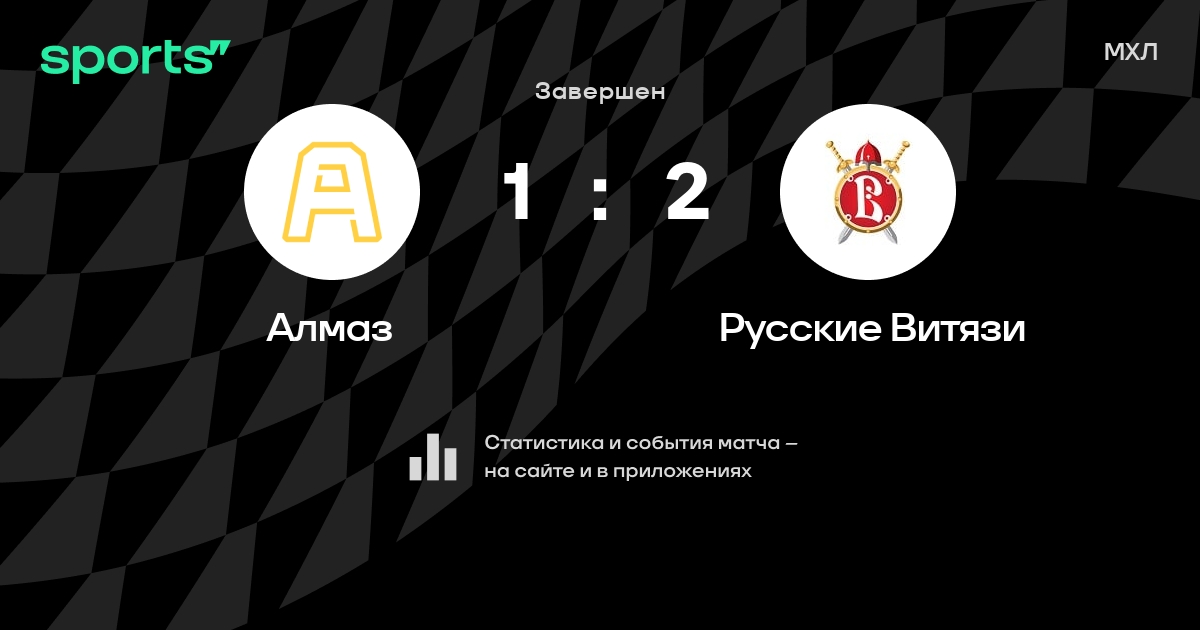 В прошедшем матче в рамках турнира МХЛ состоялась встреча команд Алмаз - Русские Витязи в городе Череповец (Россия) на стадионе Ледовый дворец (вместимость - 6000)