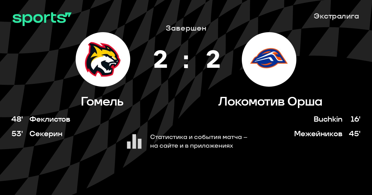 В прошедшем матче в рамках турнира Экстралига состоялась встреча команд Гомель - Локомотив Орша в городе Гомель (Беларусь) на стадионе Ледовый дворец Гомель (вместимость - 2700)
