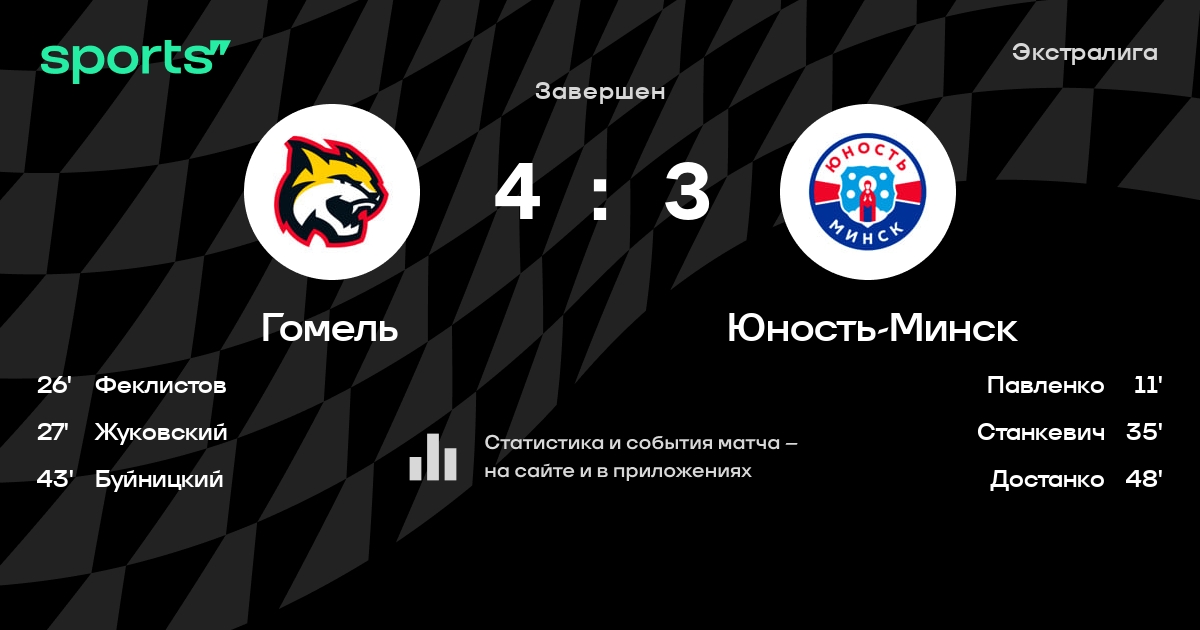 В прошедшем матче в рамках турнира Экстралига состоялась встреча команд Гомель - Юность-Минск в городе Гомель (Беларусь) на стадионе Ледовый дворец Гомель (вместимость - 2700)