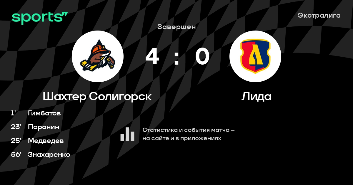 В прошедшем матче в рамках турнира Экстралига состоялась встреча команд Шахтер Солигорск - Лида в городе Солигорск (Беларусь) на стадионе Ледовый дворец спорта Солигорск (вместимость - 1800)