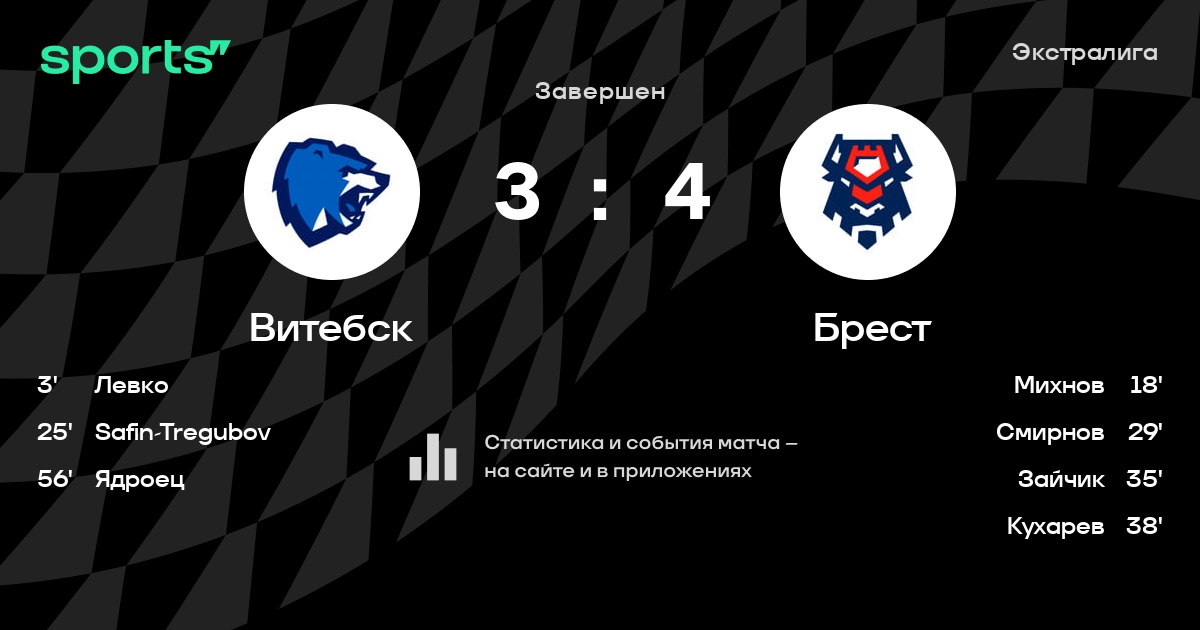 В прошедшем матче в рамках турнира Экстралига состоялась встреча команд Витебск - Брест в городе Витебск (Беларусь) на стадионе Витебский дворец спорта (вместимость - 2000)