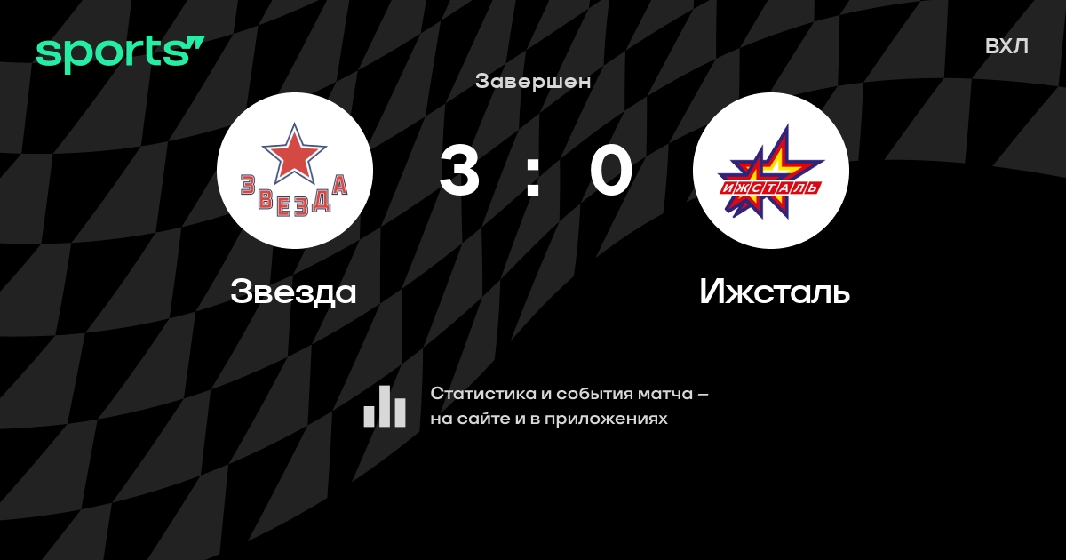 В прошедшем матче в рамках турнира ВХЛ состоялась встреча команд Звезда - Ижсталь в городе Москва (Россия) на стадионе ЦСКА-Арена