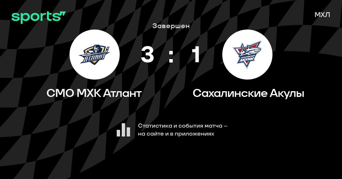 В прошедшем матче в рамках турнира МХЛ состоялась встреча команд СМО МХК Атлант - Сахалинские Акулы в городе Мытищи (Россия) на стадионе Арена-Мытищи (вместимость - 7000)