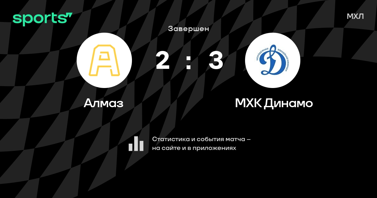 В прошедшем матче в рамках турнира МХЛ состоялась встреча команд Алмаз - МХК Динамо в городе Череповец (Россия) на стадионе Ледовый дворец (вместимость - 6000)
