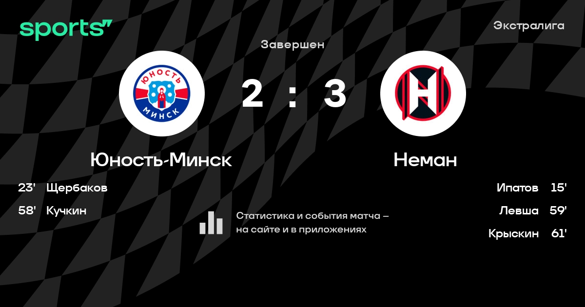 В прошедшем матче в рамках турнира Экстралига состоялась встреча команд Юность-Минск - Неман в городе Минск (Беларусь) на стадионе Чижовка-Арена (вместимость - 9487)