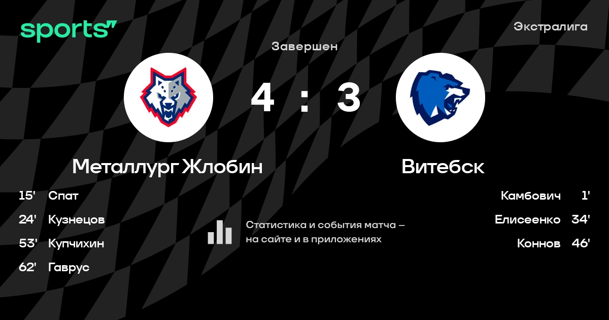 В прошедшем матче в рамках турнира Экстралига состоялась встреча команд Металлург Жлобин - Витебск в городе Жлобин (Беларусь) на стадионе Ледовый дворец Металлург (вместимость - 2018)