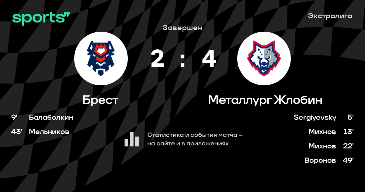 В прошедшем матче в рамках турнира Экстралига состоялась встреча команд Брест - Металлург Жлобин в городе Брест (Беларусь) на стадионе Ледовый дворец Брест (вместимость - 2000)