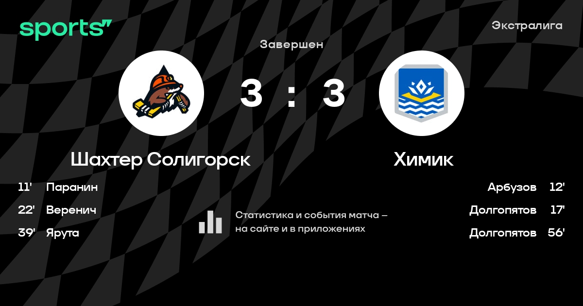В прошедшем матче в рамках турнира Экстралига состоялась встреча команд Шахтер Солигорск - Химик в городе Солигорск (Беларусь) на стадионе Ледовый дворец спорта Солигорск (вместимость - 1800)