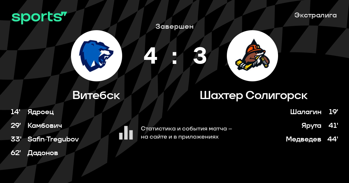 В прошедшем матче в рамках турнира Экстралига состоялась встреча команд Витебск - Шахтер Солигорск в городе Витебск (Беларусь) на стадионе Витебский дворец спорта (вместимость - 2000)