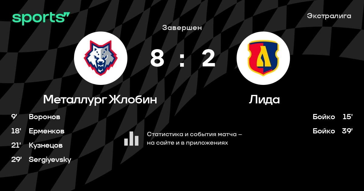 В прошедшем матче в рамках турнира Экстралига состоялась встреча команд Металлург Жлобин - Лида в городе Жлобин (Беларусь) на стадионе Ледовый дворец Металлург (вместимость - 2018)