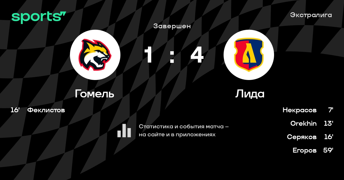 В прошедшем матче в рамках турнира Экстралига состоялась встреча команд Гомель - Лида в городе Гомель (Беларусь) на стадионе Ледовый дворец Гомель (вместимость - 2700)