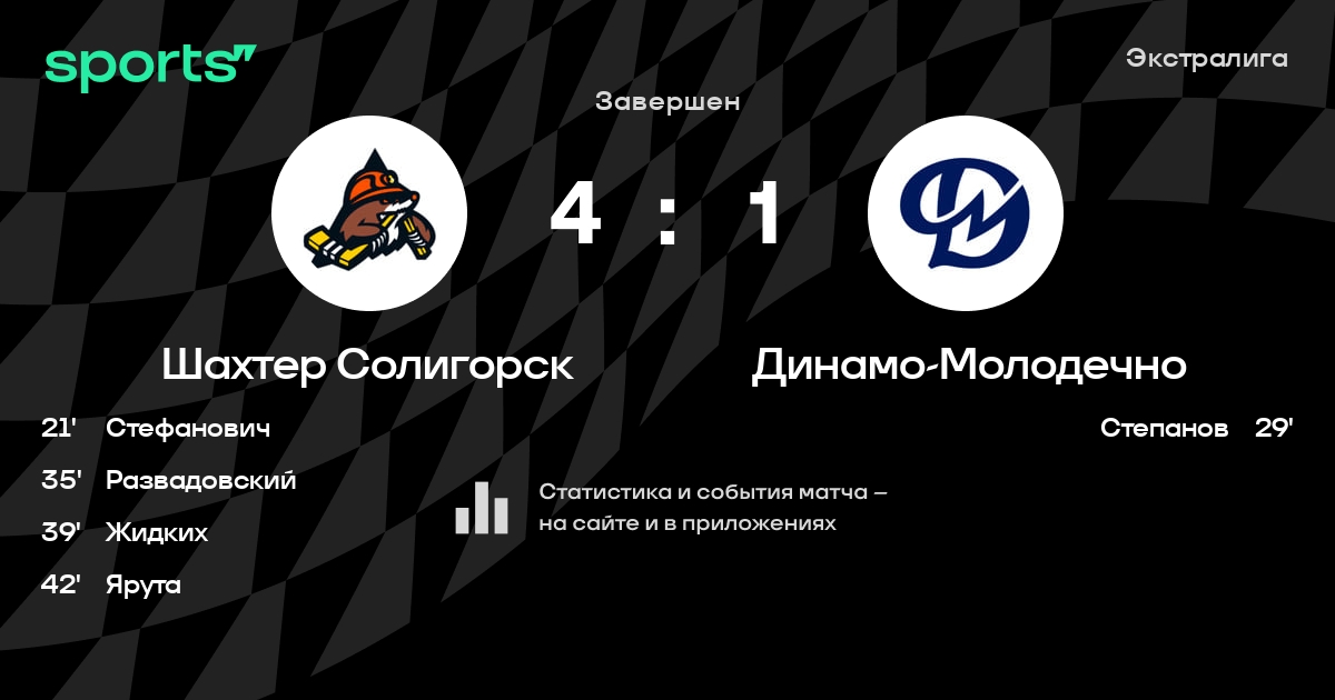 В прошедшем матче в рамках турнира Экстралига состоялась встреча команд Шахтер Солигорск - Динамо-Молодечно в городе Солигорск (Беларусь) на стадионе Ледовый дворец спорта Солигорск (вместимость - 1800)
