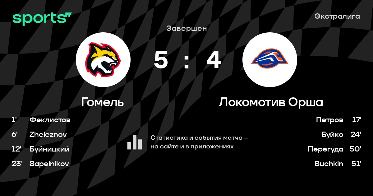В прошедшем матче в рамках турнира Экстралига состоялась встреча команд Гомель - Локомотив Орша в городе Гомель (Беларусь) на стадионе Ледовый дворец Гомель (вместимость - 2700)