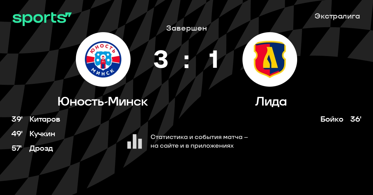 В прошедшем матче в рамках турнира Экстралига состоялась встреча команд Юность-Минск - Лида в городе Минск (Беларусь) на стадионе Чижовка-Арена (вместимость - 9487)