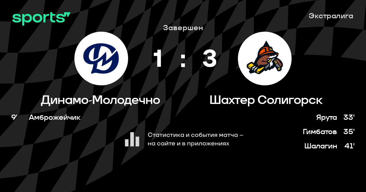 В прошедшем матче в рамках турнира Экстралига состоялась встреча команд Динамо-Молодечно - Шахтер Солигорск в городе Молодечно (Беларусь) на стадионе Ледовый дворец Молодечно (вместимость - 2000)