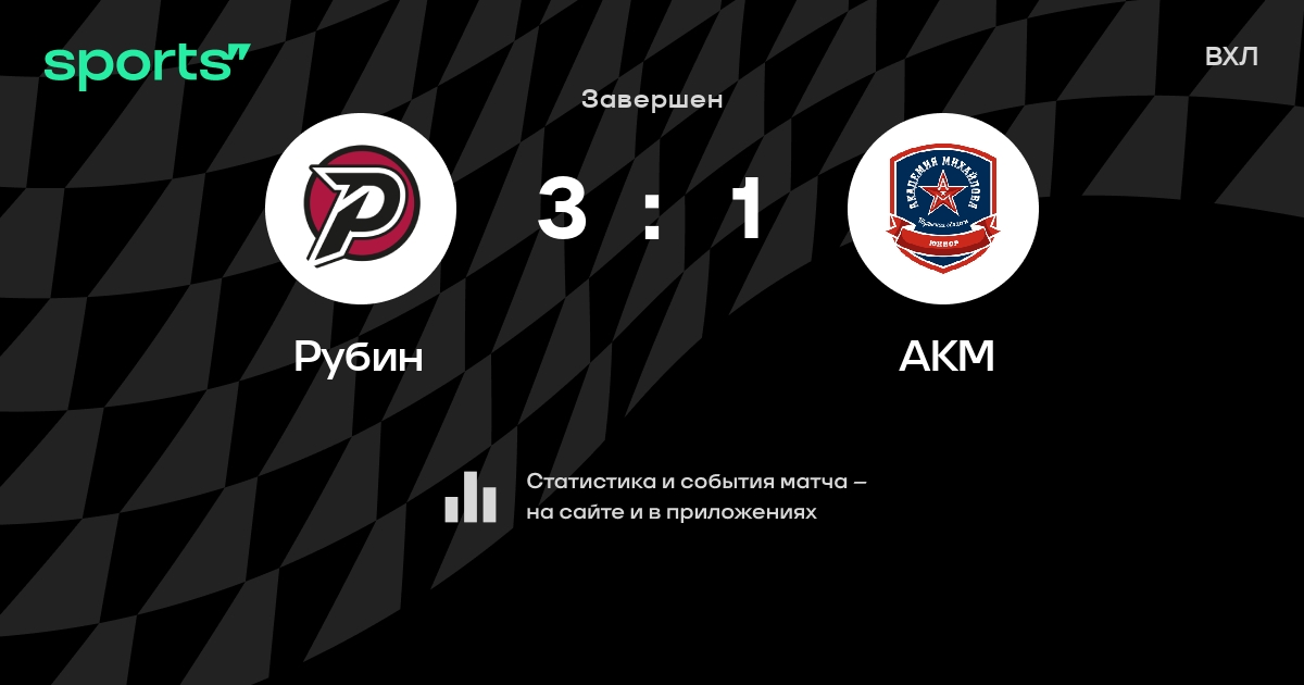В прошедшем матче в рамках турнира ВХЛ состоялась встреча команд Рубин - АКМ в городе Казань (Россия) на стадионе Дворец спорта (вместимость - 3523)