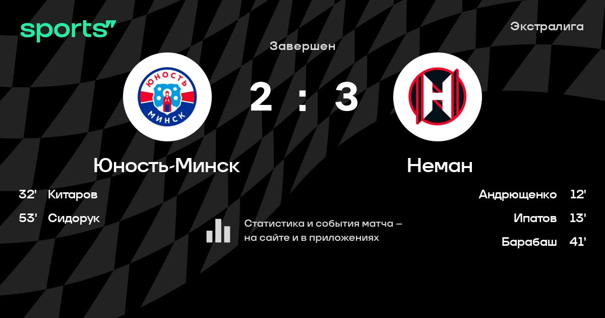 В прошедшем матче в рамках турнира Экстралига состоялась встреча команд Юность-Минск - Неман в городе Минск (Беларусь) на стадионе Чижовка-Арена (вместимость - 9487)