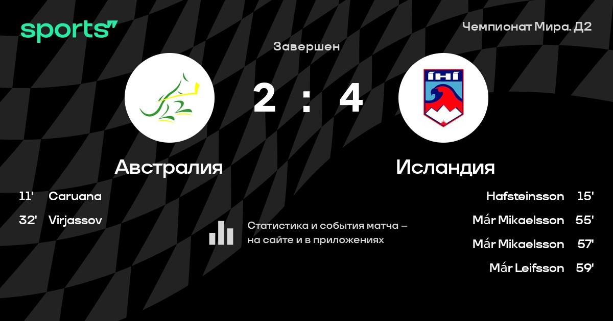 В прошедшем матче в рамках турнира Чемпионат Мира. Д2 состоялась встреча команд Австралия - Исландия в городе на стадионе smk2 Palacio de Hielo