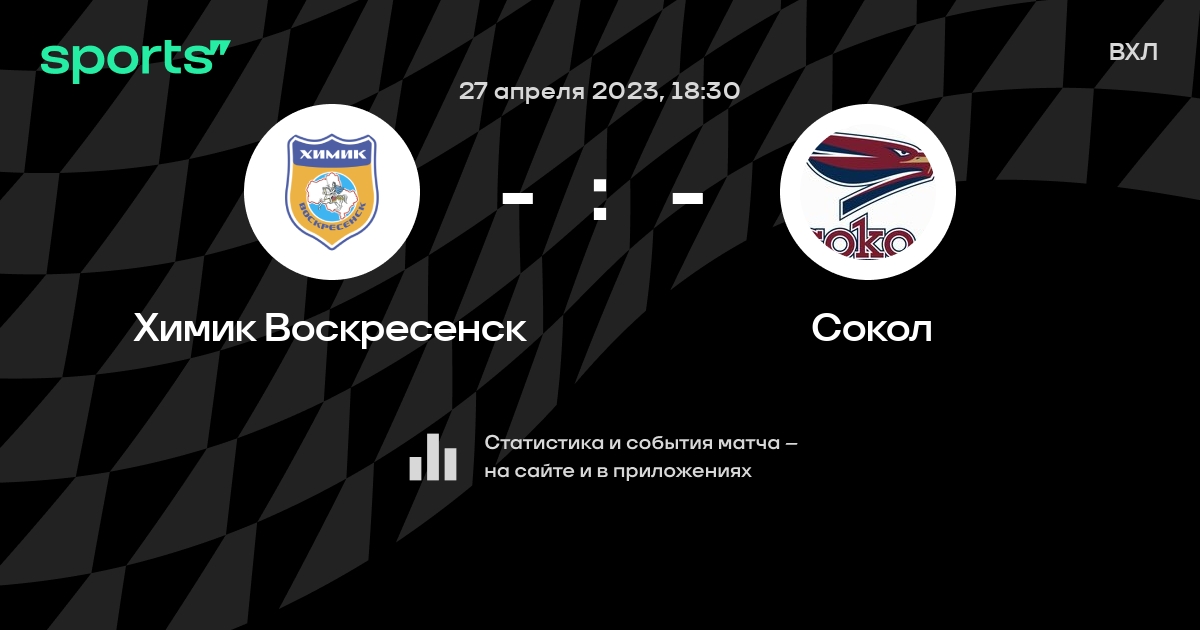 В предстоящем матче в рамках турнира ВХЛ пройдет встреча команд Химик Воскресенск - Сокол в городе на стадионе Podmoskovie Ice Palace.