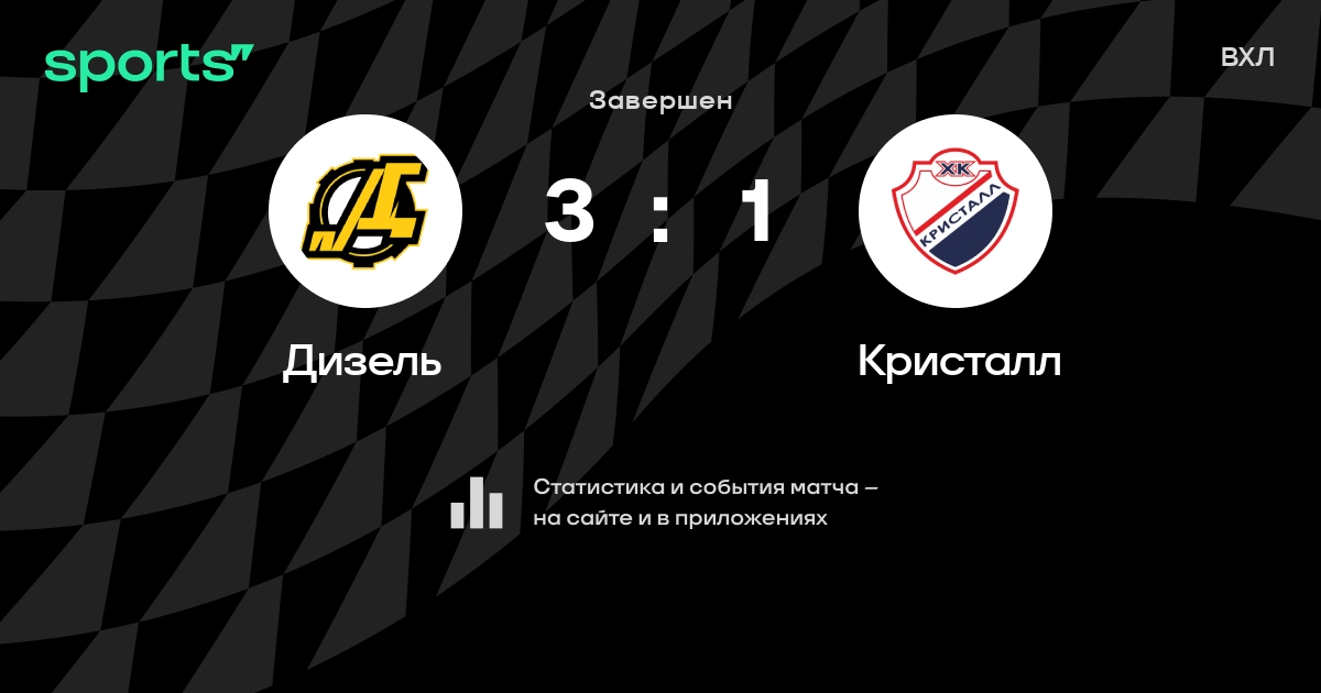 В прошедшем матче в рамках турнира ВХЛ состоялась встреча команд Дизель - Кристалл в городе на стадионе Diesel-Arena