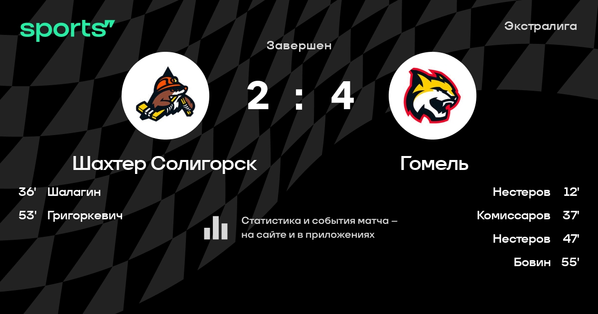 В прошедшем матче в рамках турнира Экстралига состоялась встреча команд Шахтер Солигорск - Гомель в городе Солигорск (Беларусь) на стадионе Ледовый дворец спорта Солигорск (вместимость - 1800)