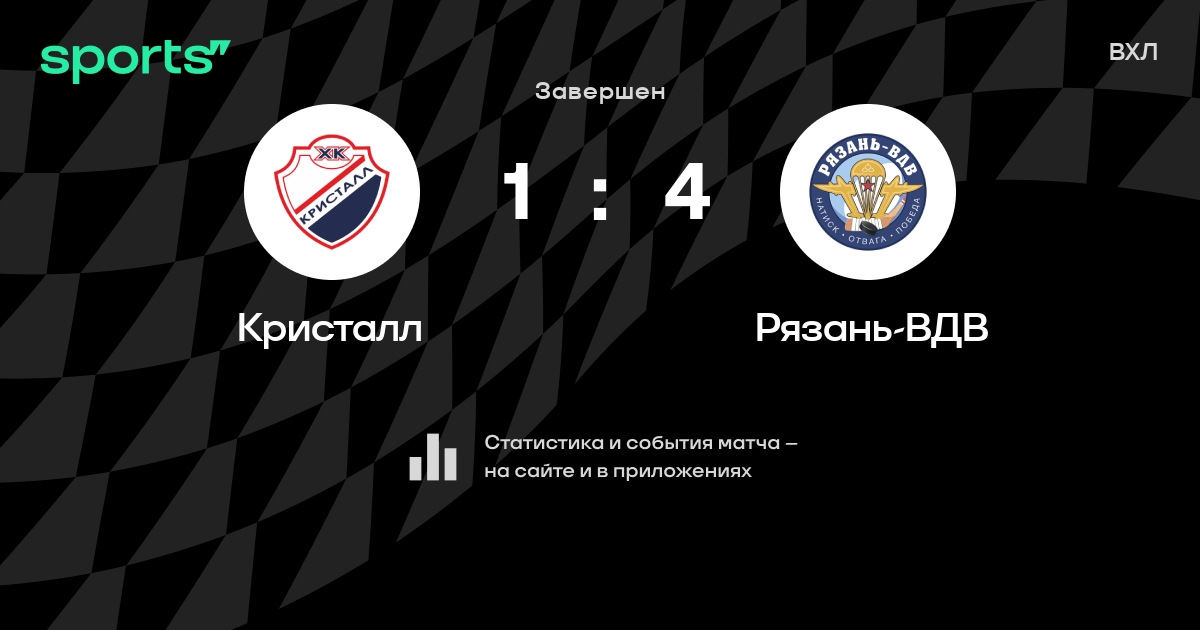 В прошедшем матче в рамках турнира ВХЛ состоялась встреча команд Кристалл - Рязань-ВДВ в городе на стадионе Ledovyy dvorets sporta Kristall