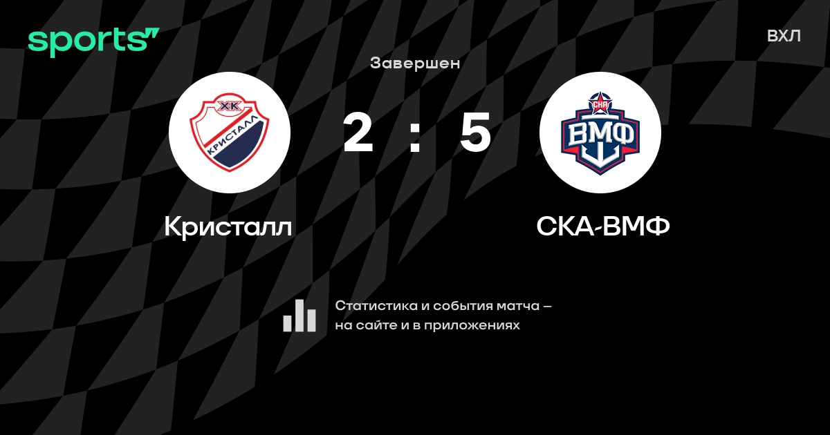 В прошедшем матче в рамках турнира ВХЛ состоялась встреча команд Кристалл - СКА-ВМФ в городе на стадионе Ledovyy dvorets sporta Kristall