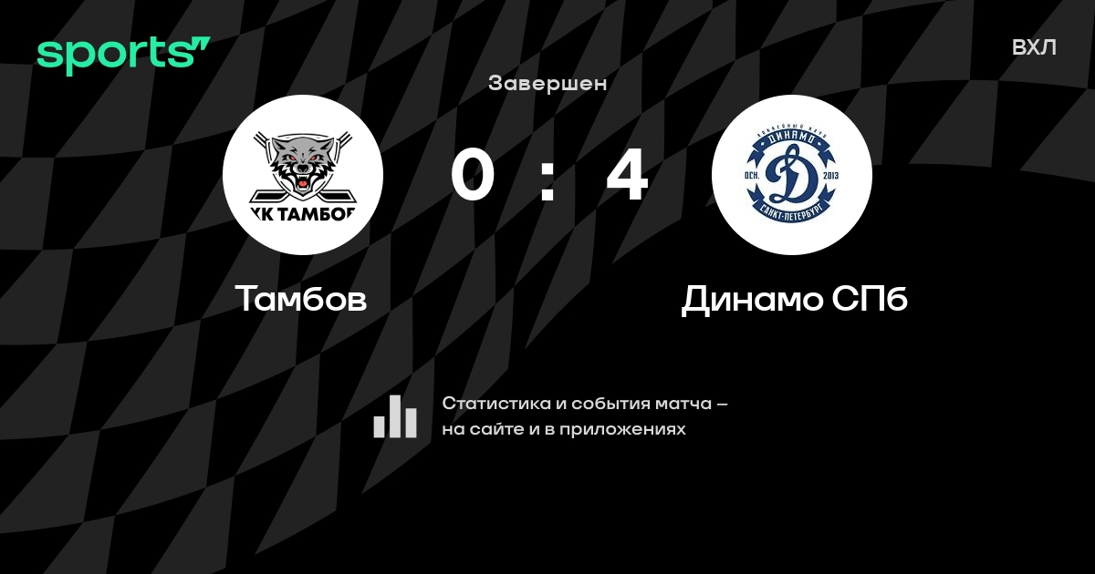 В прошедшем матче в рамках турнира ВХЛ состоялась встреча команд Тамбов - Динамо СПб в городе  на стадионе Sports Palace Crystal