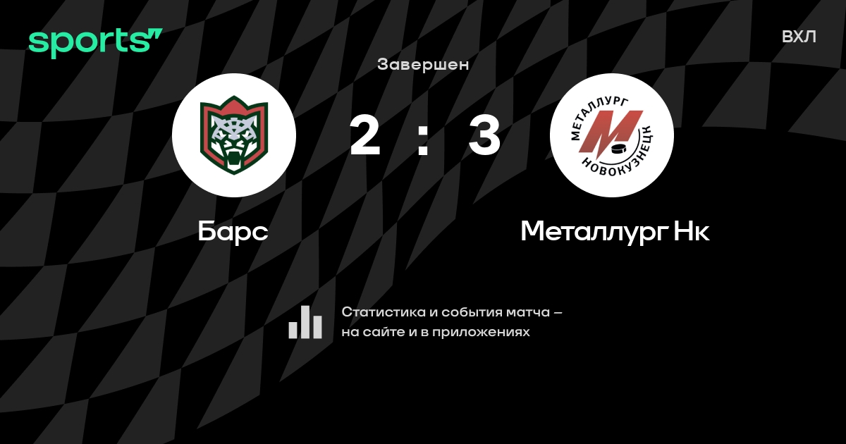 В прошедшем матче в рамках турнира ВХЛ состоялась встреча команд Барс - Металлург Нк в городе Казань (Россия) на стадионе Дворец спорта (вместимость - 3523)