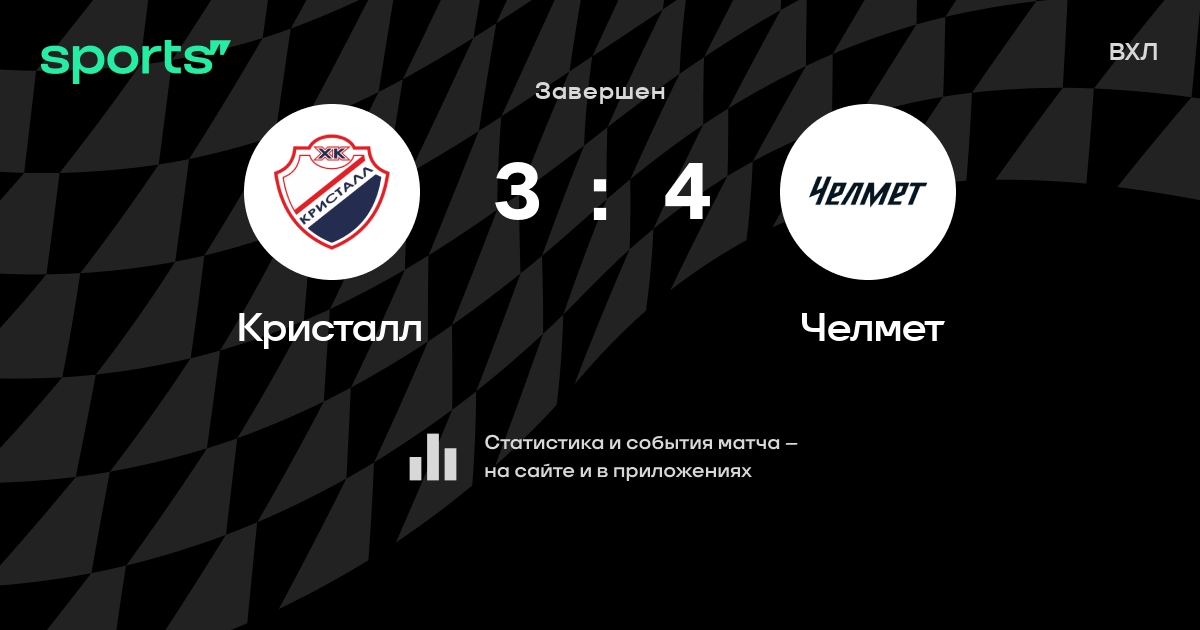 В прошедшем матче в рамках турнира ВХЛ состоялась встреча команд Кристалл - Челмет в городе на стадионе Ledovyy dvorets sporta Kristall