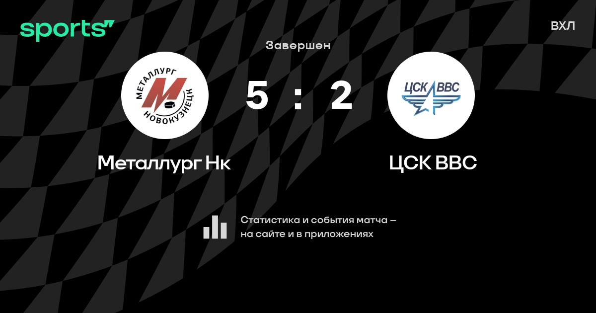 В прошедшем матче в рамках турнира ВХЛ состоялась встреча команд Металлург Нк - ЦСК ВВС в городе на стадионе Kuznetskiy Led