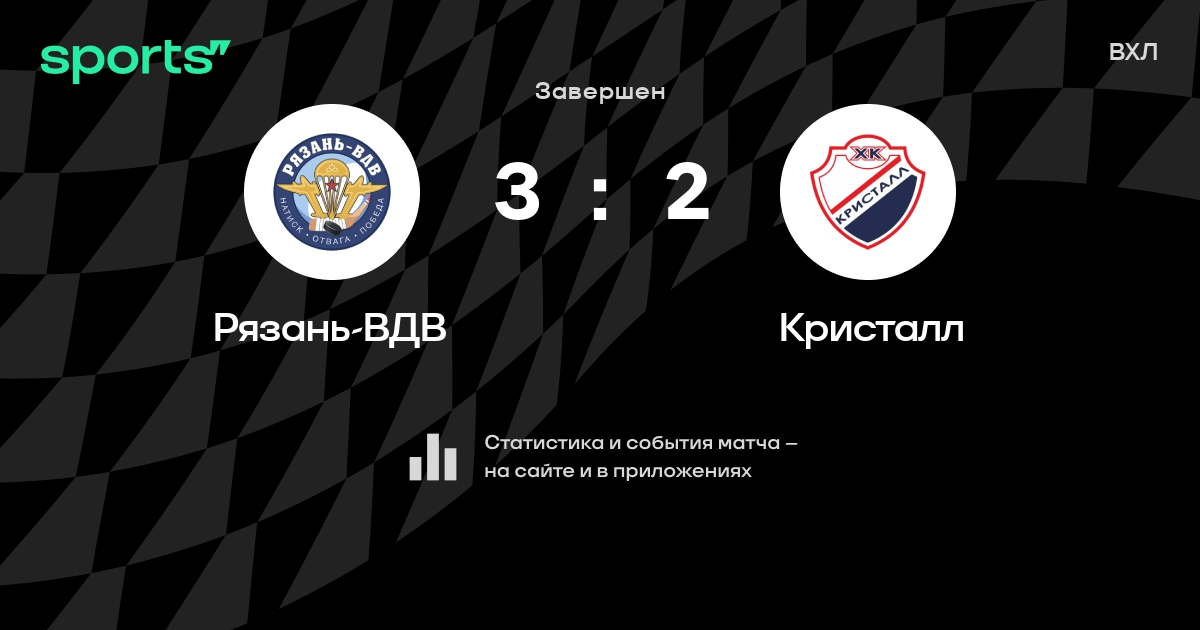 В прошедшем матче в рамках турнира ВХЛ состоялась встреча команд Рязань-ВДВ - Кристалл в городе на стадионе The Palace of sports Olimpiyskiy