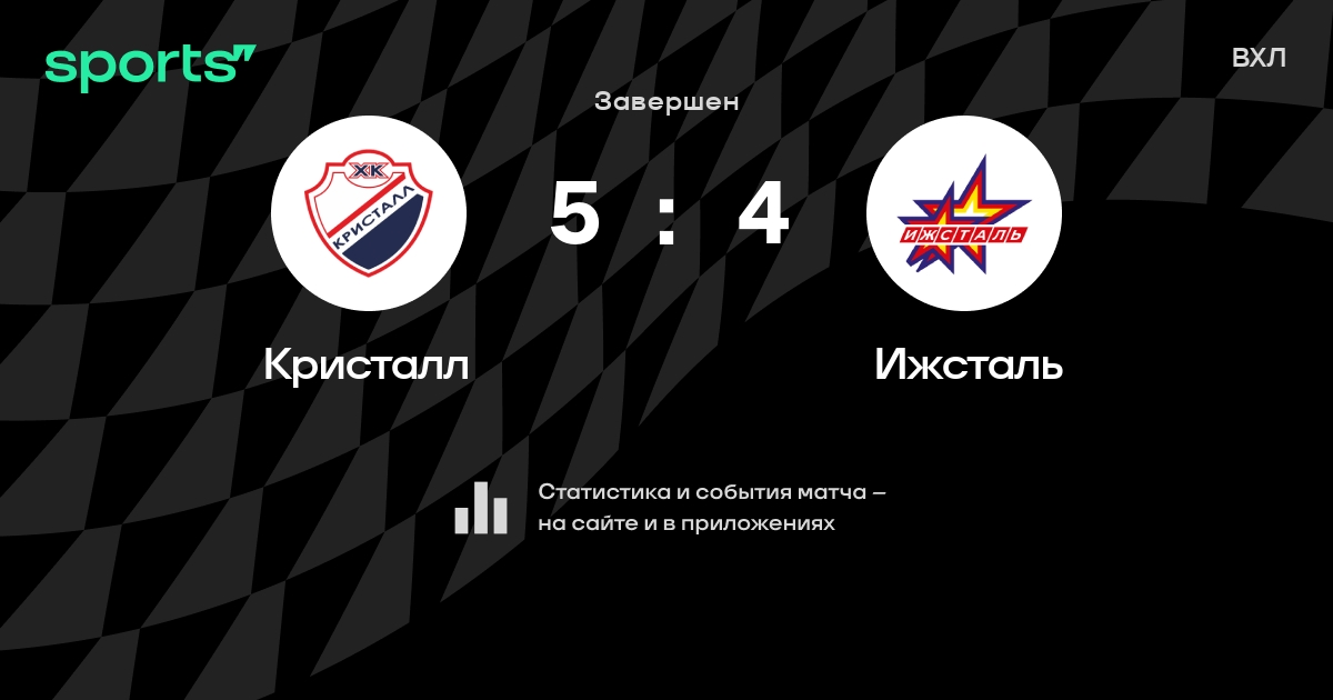 В прошедшем матче в рамках турнира ВХЛ состоялась встреча команд Кристалл - Ижсталь в городе на стадионе Ledovyy dvorets sporta Kristall