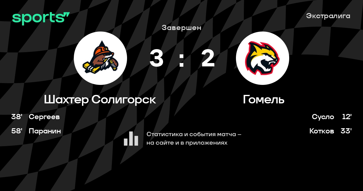 В прошедшем матче в рамках турнира Экстралига состоялась встреча команд Шахтер Солигорск - Гомель в городе Солигорск (Беларусь) на стадионе Ледовый дворец спорта Солигорск (вместимость - 1800)