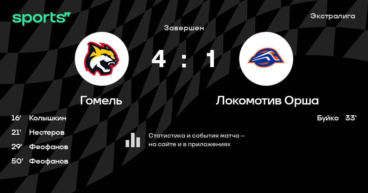 В прошедшем матче в рамках турнира Экстралига состоялась встреча команд Гомель - Локомотив Орша в городе Гомель (Беларусь) на стадионе Ледовый дворец Гомель (вместимость - 2700)