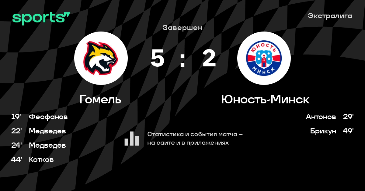 В прошедшем матче в рамках турнира Экстралига состоялась встреча команд Гомель - Юность-Минск в городе Гомель (Беларусь) на стадионе Ледовый дворец Гомель (вместимость - 2700)