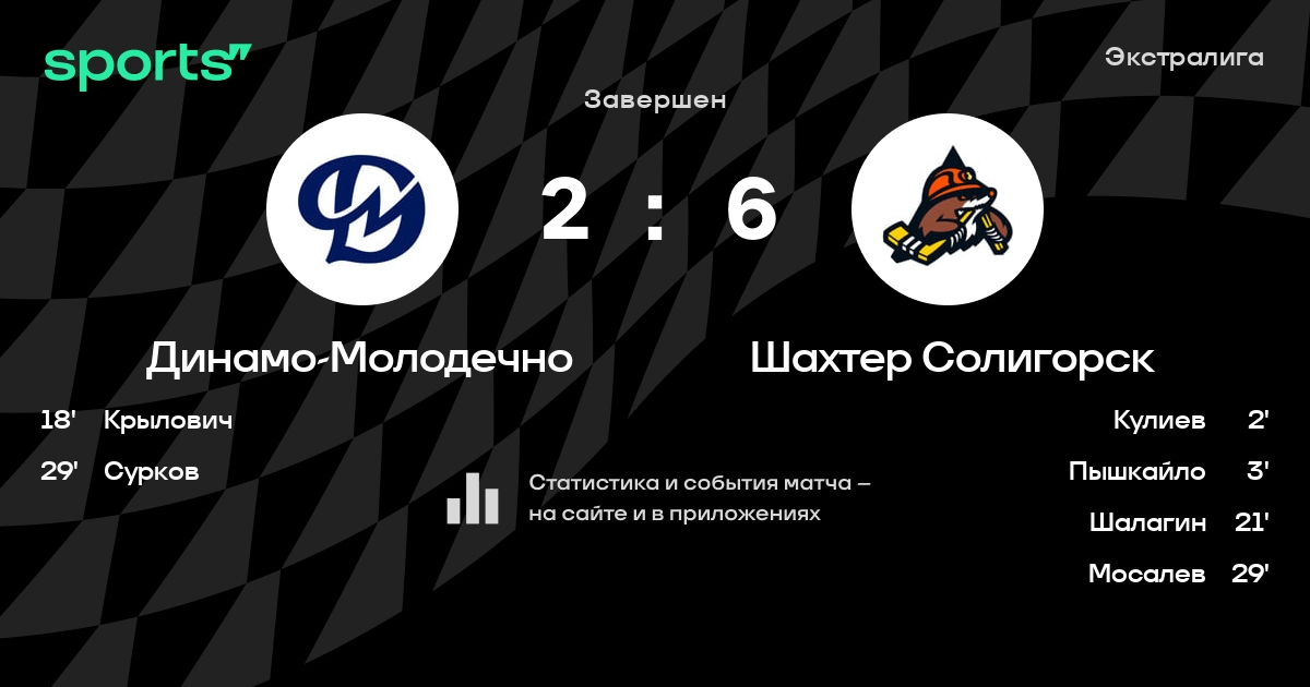 В прошедшем матче в рамках турнира Экстралига состоялась встреча команд Динамо-Молодечно - Шахтер Солигорск в городе Молодечно (Беларусь) на стадионе Ледовый дворец Молодечно (вместимость - 2000)