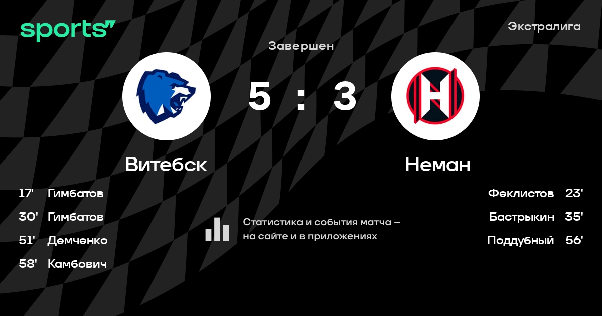 В прошедшем матче в рамках турнира Экстралига состоялась встреча команд Витебск - Неман в городе Витебск (Беларусь) на стадионе Витебский дворец спорта (вместимость - 2000)