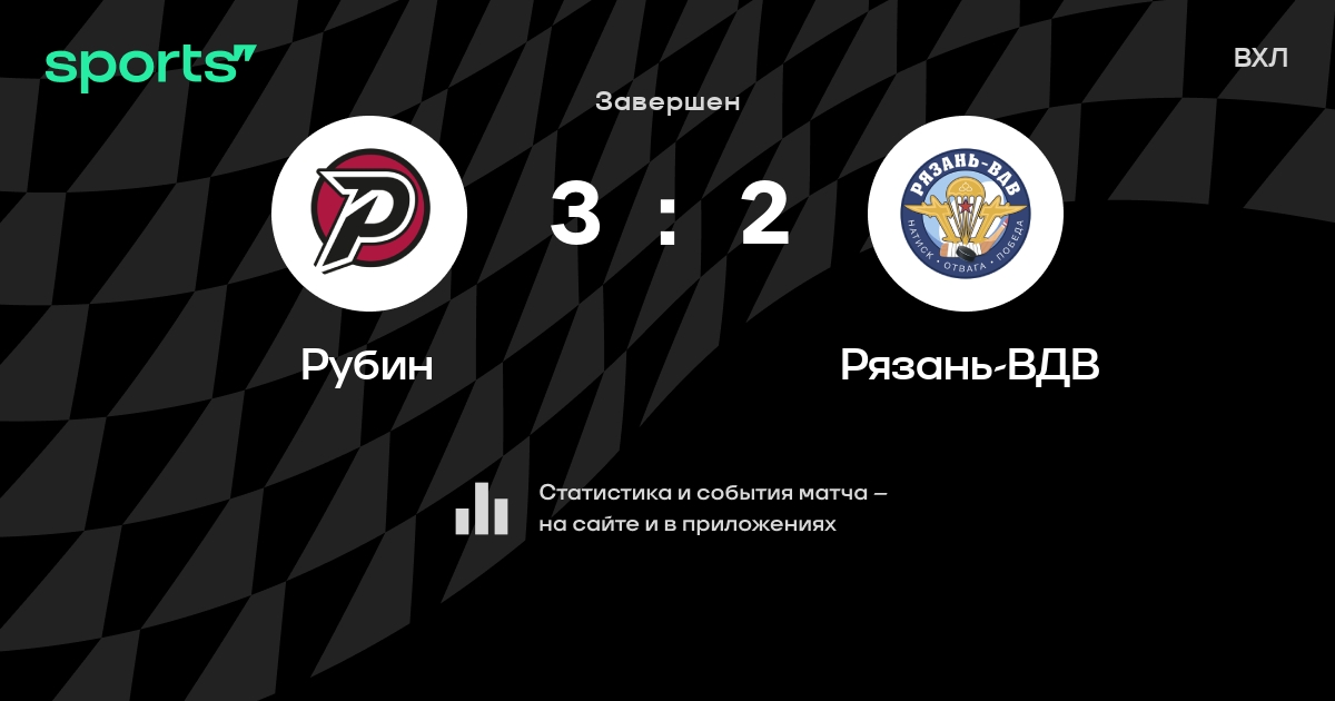 В прошедшем матче в рамках турнира ВХЛ состоялась встреча команд Рубин - Рязань-ВДВ в городе Казань (Россия) на стадионе Дворец спорта (вместимость - 3523)