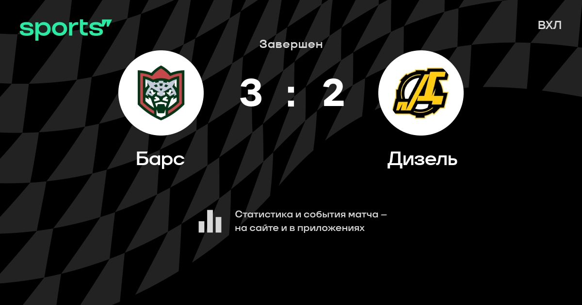 В прошедшем матче в рамках турнира ВХЛ состоялась встреча команд Барс - Дизель в городе на стадионе Dvorets Sporta Yubileynyy
