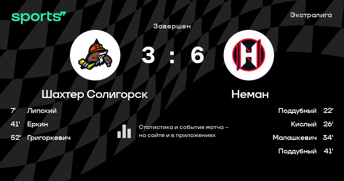 В прошедшем матче в рамках турнира Экстралига состоялась встреча команд Шахтер Солигорск - Неман в городе Солигорск (Беларусь) на стадионе Ледовый дворец спорта Солигорск (вместимость - 1800)
