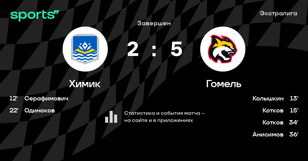 В прошедшем матче в рамках турнира Экстралига состоялась встреча команд Химик - Гомель в городе Новополоцк (Беларусь) на стадионе Дворец культуры и спорта (вместимость - 1200)