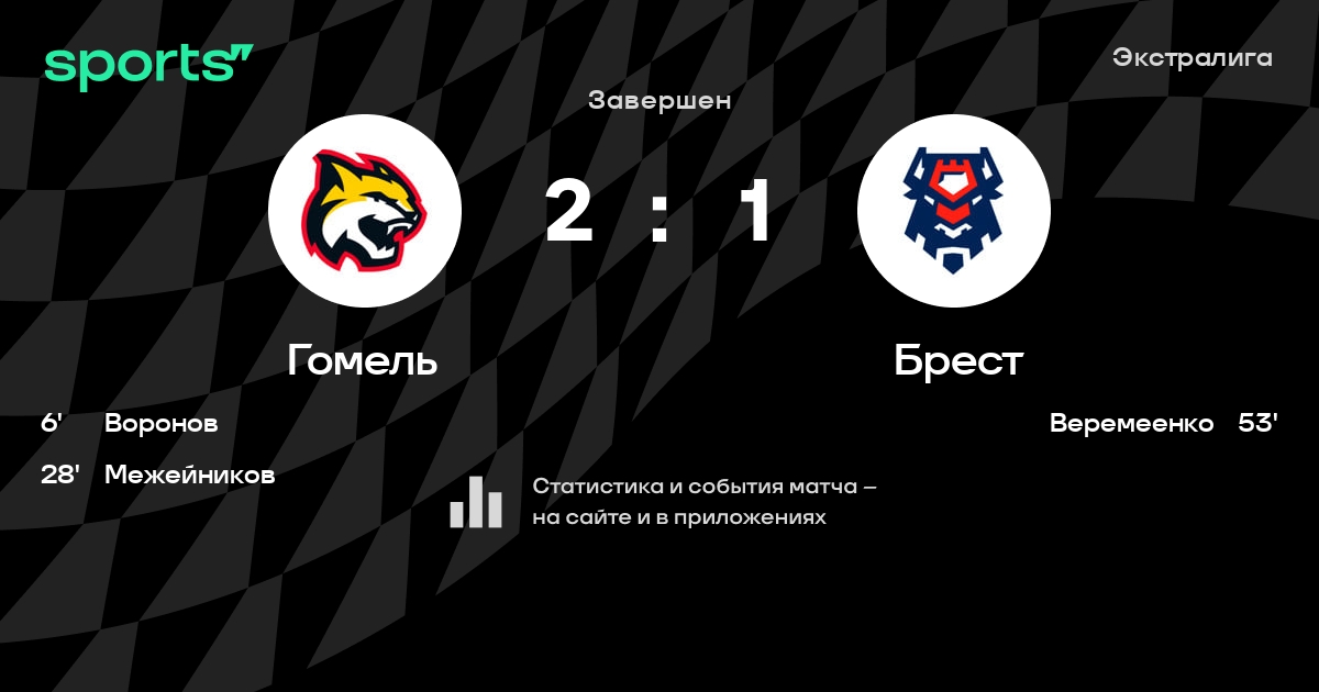В прошедшем матче в рамках турнира Экстралига состоялась встреча команд Гомель - Брест в городе Гомель (Беларусь) на стадионе Ледовый дворец Гомель (вместимость - 2700)